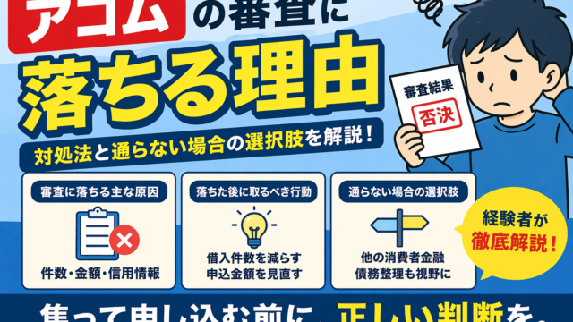 アコムの審査に落ちたとき、「なぜ通らなかったのか」「もう借りられないのか」と不安になる方は多いと思います。結論から言うと、アコムの審査に落ちる原因はある程度パターン化されており、その多くは「借入件数・借入金額」と「信用情報」によって判断され...