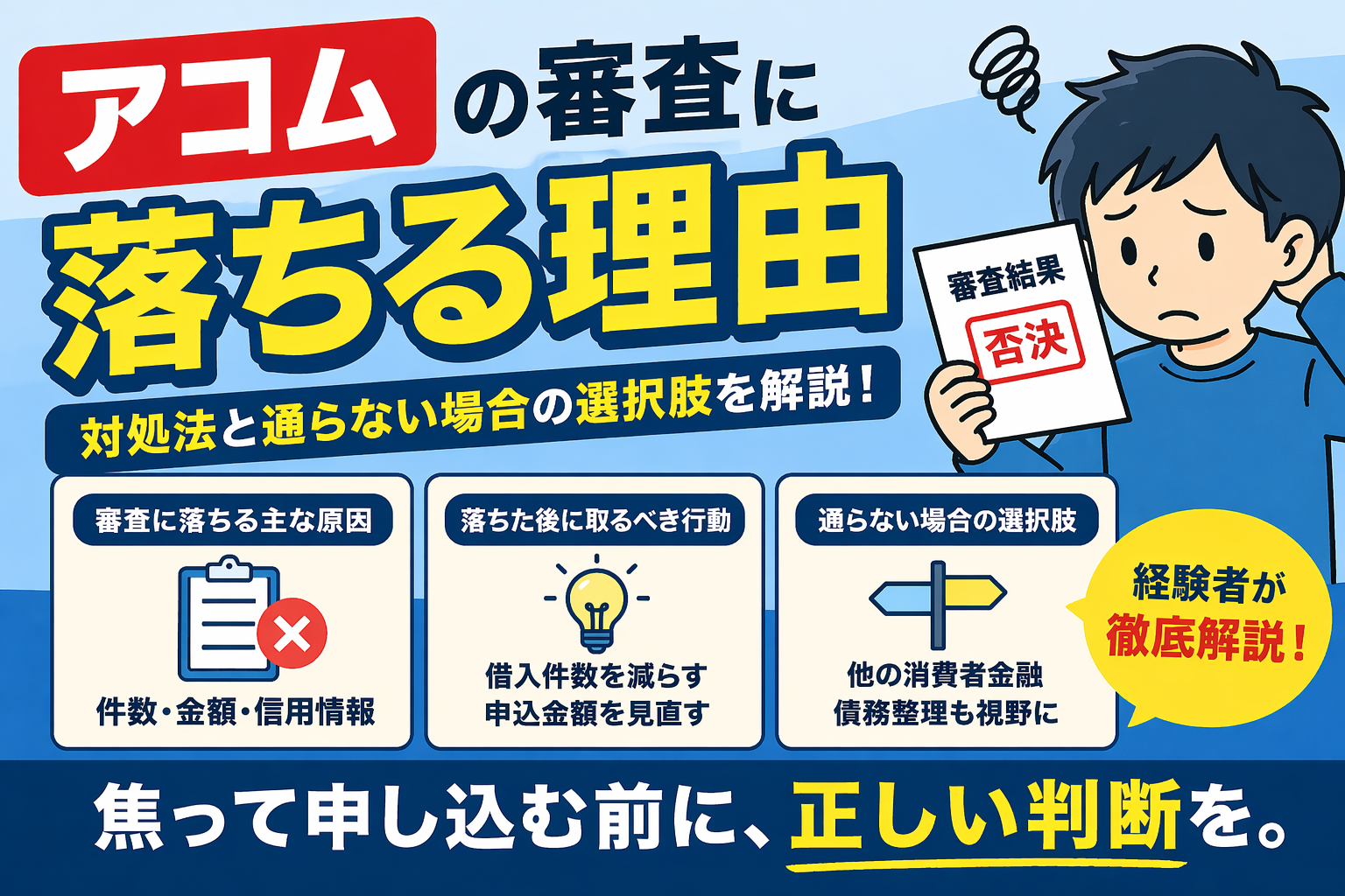この記事では、アコムの審査に落ちる理由を整理しつつ、今から取れる具体的な対処法と現実的な選択肢まで解説します。